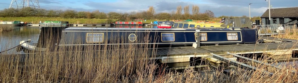 I was reading an article on a narrowboat forum this week, and came across the idea of “shiny narrowboaters”. These are people who care more about the appearance of the boat than what they do with it. I think that I am quite shiny. One of the jobs I did this week was repainting the roof and one side of the boat (I ran out of paint). I also varnished some woodwork, changed a left hand cleat for a right hand one (getting too technical for a blog here!) and put up a sign that was made for me by my work friends when I retired. I think the boat looks very smart.