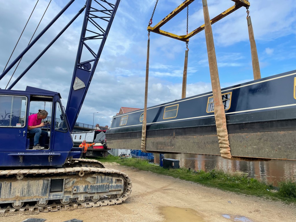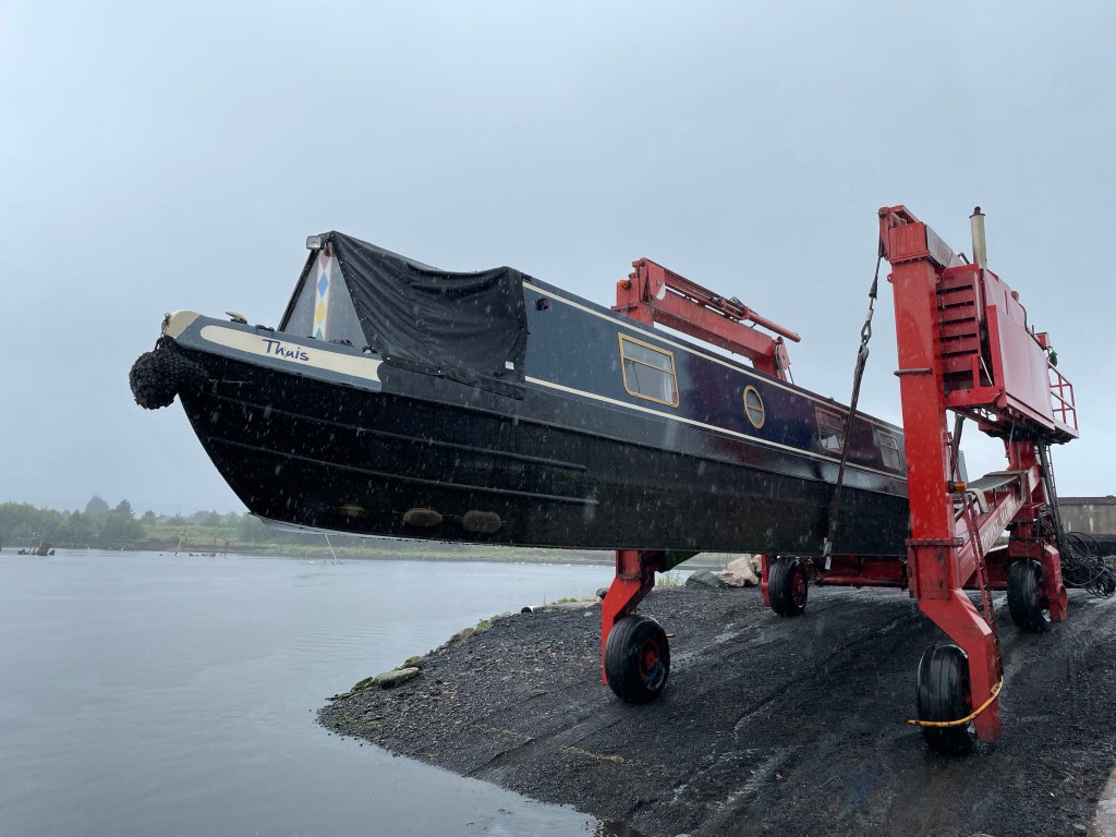 Lifting the boat out of the river in torrential rain and then putting it back in in England was equally nerve wracking. I knew the guys were experts but seeing the boat hanging in the air, it just looked as if it could topple over very easily!