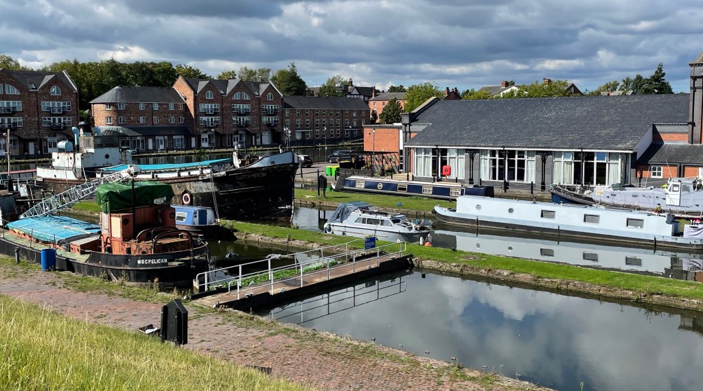 Last weekend we spent a couple of days at a very special mooring. Ellesmere Port is a run down small industrial town, on the south bank of the river Mersey and next to the Manchester Ship Canal. It does not have much to commend it, but it does have one gem. It is home to the National Waterways Museum. The old port is at the end of the Shropshire Union canal, where is meets the ship canal to the sea. It was once a thriving area, employing hundreds of people loading and unloading goods. After years of neglect, in the 1970’s a group of volunteers got together to clean it up and turn it into a boat museum. They did an amazing job and today it houses several acres of old buildings, exhibitions, boats and history. And best of all, we got to moor overnight in the middle of it.
