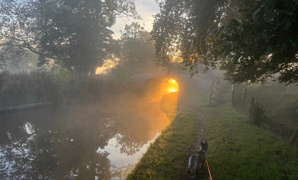The weather right now is just about perfect for being on a narrowboat. We are waking up to cold crisp mornings with mist rising off the canal. We are getting really beautiful sunrises, sunsets and dramatic moons. During the day the temperature is rising to low twenties – warm enough for shorts and t-shirts.