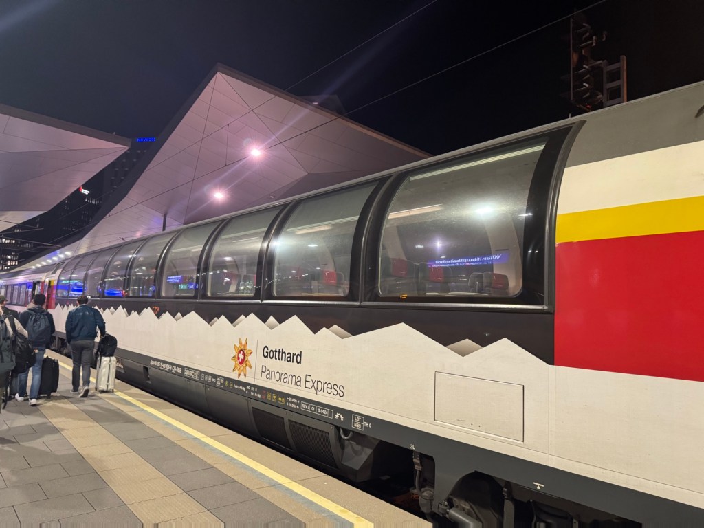 Krakow to Vienna was on a lovely new train with a panoramic coach borrowed from Swiss Railways. It gave me great views over the countryside as the sun went down.