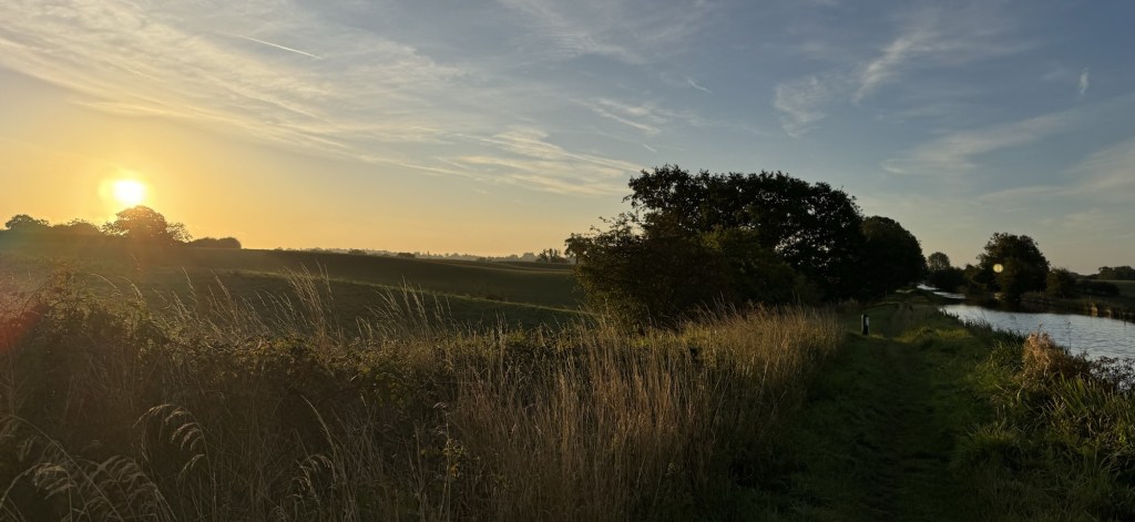 Well one thing is the light. The sunrises and sunsets are just so beautiful. We are currently traveling in the middle of the Shropshire countryside and I look forward to walking the dogs each morning.