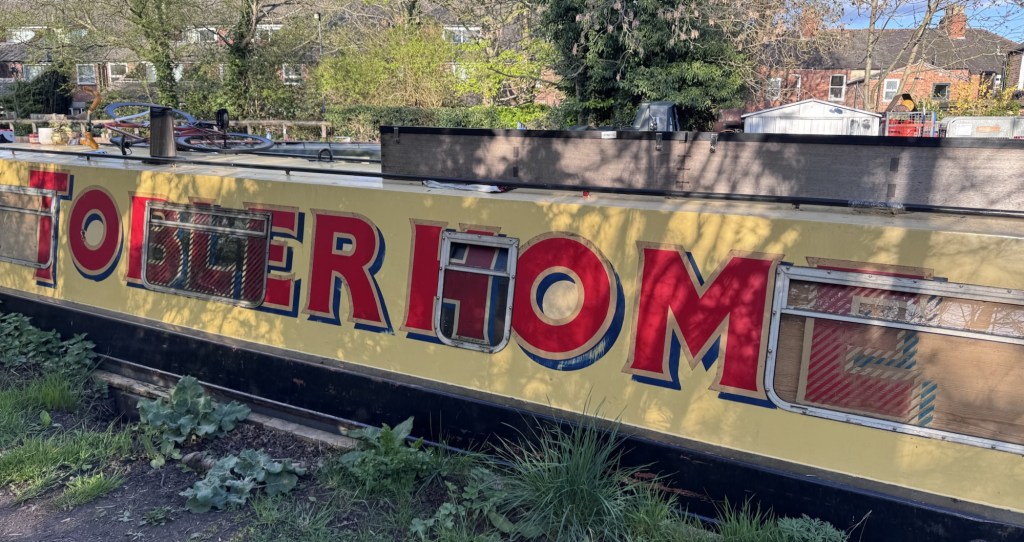 “Toblerhome” has been moored just up from us in Oxford this week. Other favourites of mine are “NotaYot” on the Staffs and Worcester, and “Flat Bottomed Girl” which I think is on the Leeds & Liverpool.